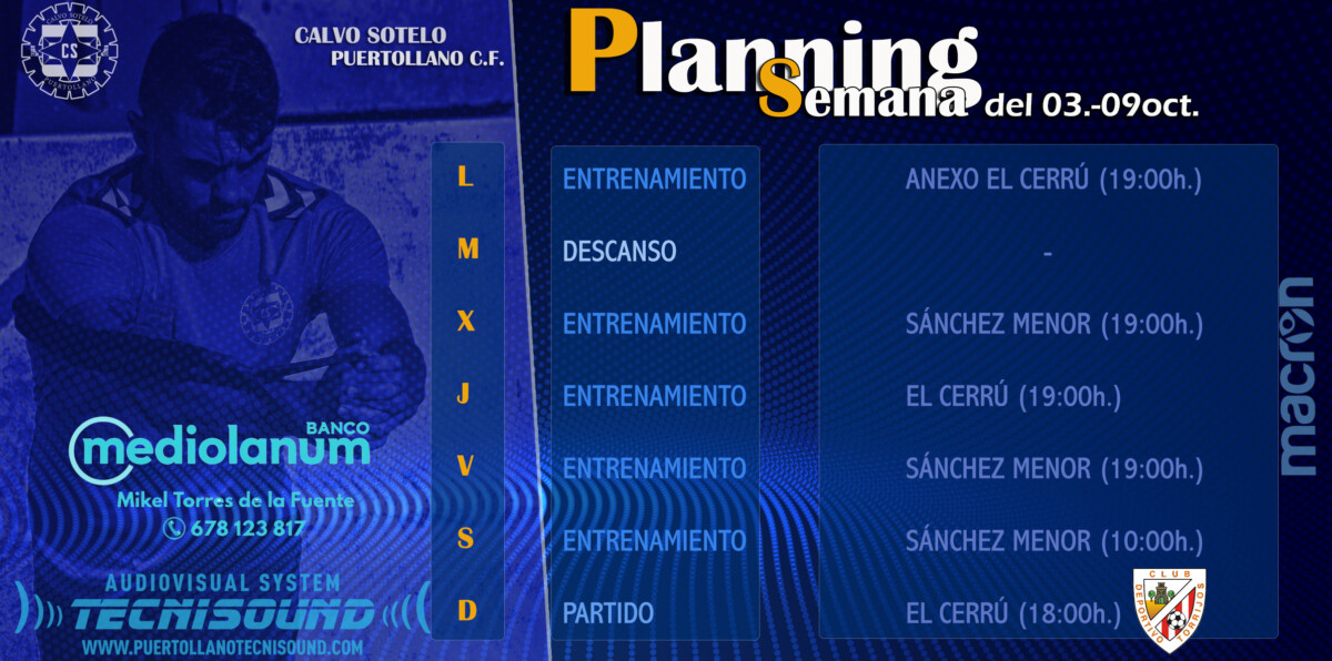 Infografía correspondiente a la semana de trabajo del 02 al 09 de octubre, semana de preparación del encuentro de la 5ª jornada Calvo Sotelo Puertollano C.F. – C.D. Torrijos.
