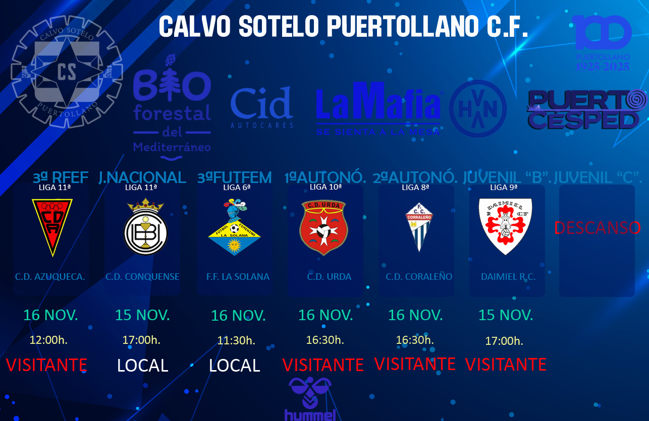 AGENDA SEMANAL 15/Nov/2025 Infografía de los encuentros que se disputarán en la semana del 10 al 16 de noviembre.