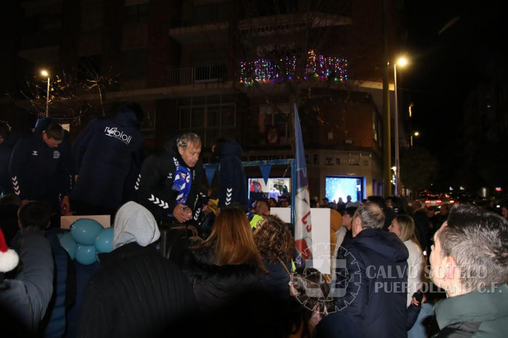 Uno de los momentos más emotivos de la noche se vivió a su paso por la sede oficial del Club, donde los jugadores que participaron en la Cabalgata pudieron sentir de primera mano el cariño y el respaldo que la ciudad de Puertollano tiene hacia el Calvo Sotelo Puertollano C.F., en un ambiente lleno de entusiasmo y cercanía.