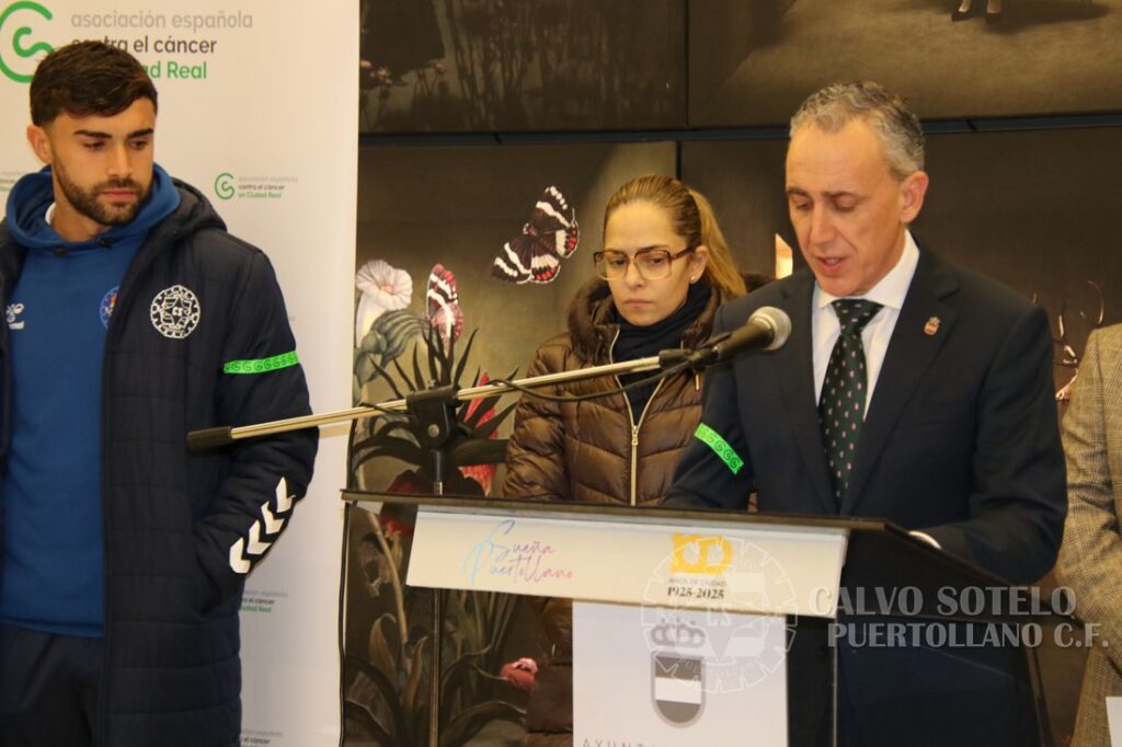 La jornada comenzó con la intervención de Luz María Puerto, quien abrió la lectura del manifiesto arropada por los miembros del comité local de la Asociación Española Contra el Cáncer (AECC). La imagen del acto fue de absoluta cohesión: junto a ellos se encontraba la plantilla al completo del Calvo Sotelo Puertollano C.F., así como una amplia representación de la corporación municipal,